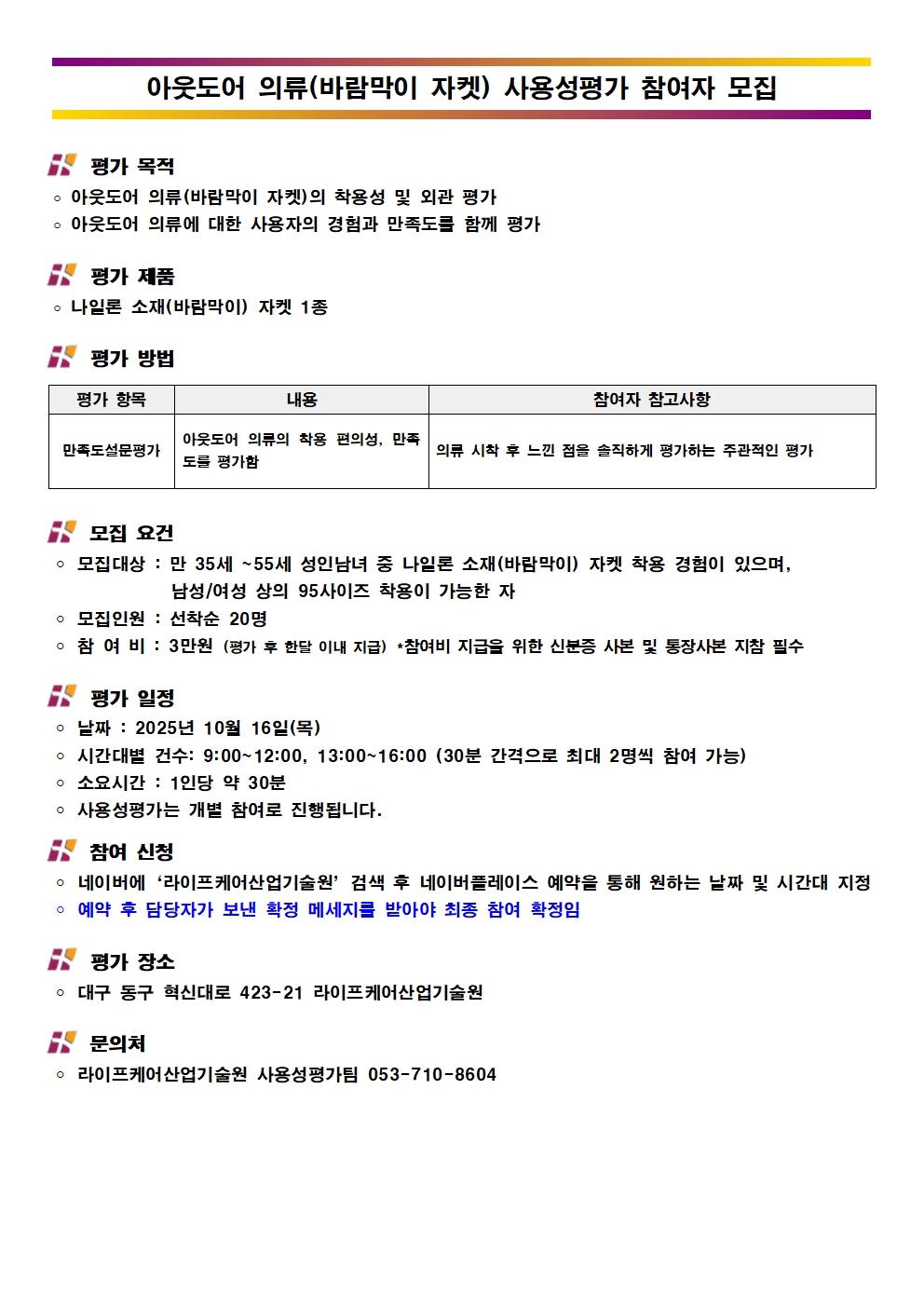 [마감]바람막이 자켓 사용성평가 참여자 모집